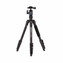Il treppiede in alluminio di Benro include la testa a sfera IH0; racchiusa nelle gambe pieghevoli, consente al treppiede di ripiegarsi fino a soli 39,5 cm durante il trasporto. Quando è completamente esteso, il treppiede raggiunge i 147,5 cm di altezza e può sostenere fino a 4 kg. Le gambe a 5 sezioni sono fissate con chiusure a scatto e possono essere regolate individualmente sia in altezza che in angolazione delle gambe. Una delle gambe ha un'impugnatura in schiuma e può essere staccata dal treppiede e collegata alla colonna centrale per formare un monopiede. La testa a sfera IH0 in dotazione ha una manopola di bloccaggio per il controllo della stessa. Una tacca a 90° semplifica il posizionamento della fotocamera in orientamento verticale.