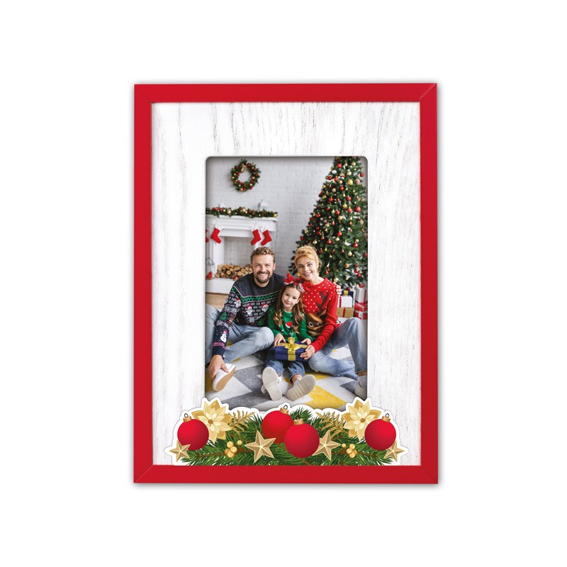 Cornice Radal in legno, colore naturale e rosso, con decoro traforato e a rilievo, a tema invernale, da tavolo, idea regalo originale, decorazione natalizia, regalo personalizzato.