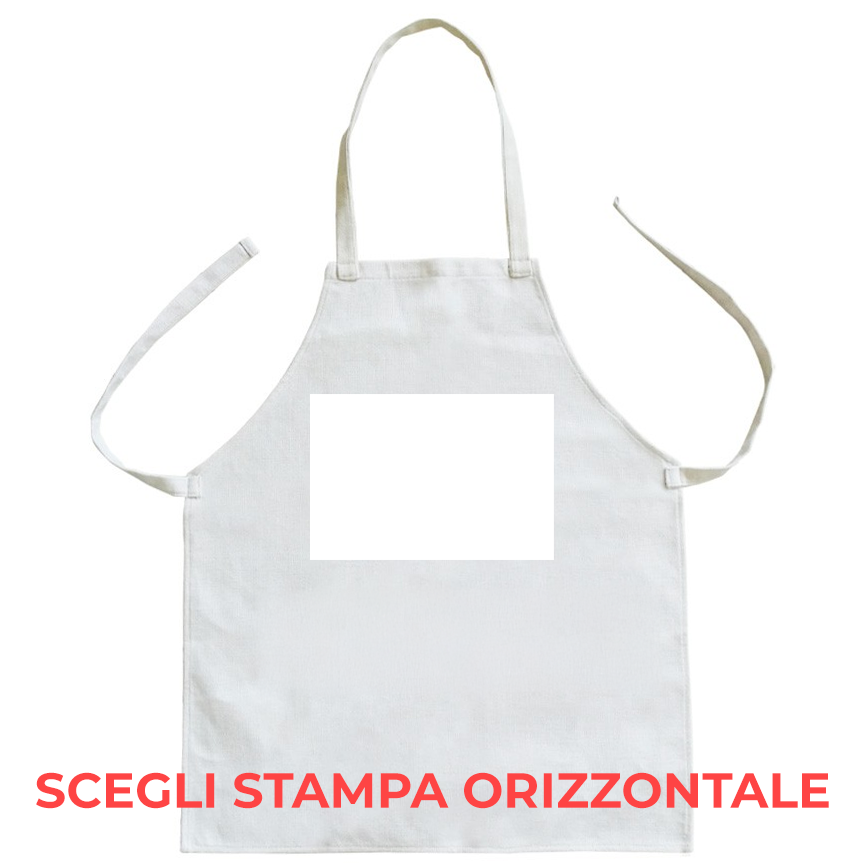 Grembiule da cucina misura 75x65 cm senza tasche con stampa in formato A4.Prodotto personalizzabile on line cliccando sul pulsante "Personalizzami ora!".Scegliere solo una opzione tra orizzontale e verticale a seconda della immagine da stampare. Pronto in un solo giorno lavorativo presso le nostri sedi o per essere spedito in tutta Italia.