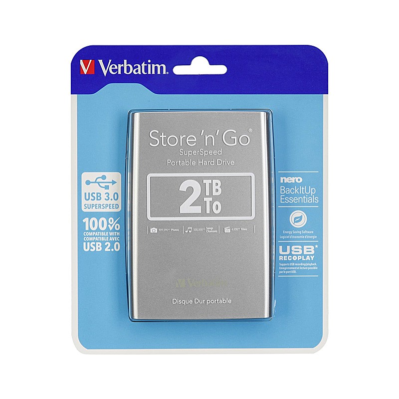 Il Verbatim Store ‘n’ Go 2,5" da 2TB è un hard disk esterno portatile pensato per chi ha bisogno di ampio spazio di archiviazione in un formato compatto ed elegante. Grazie all’interfaccia USB 3.0 garantisce trasferimenti rapidi e affidabili, risultando ideale per il backup e il trasporto quotidiano di foto, video, documenti e progetti di lavoro. Il design sottile in finitura argento lo rende pratico da portare sempre con sé, senza necessità di alimentazione esterna grazie alla connessione USB plug & play.