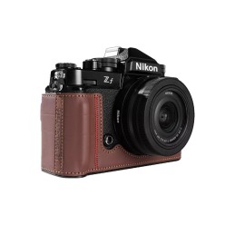 Realizzata in ecopelle con texture effetto coccodrillo, la custodia aggiunge un tocco retrò e un aspetto elegante alla tua fotocamera. È dotato di un'impugnatura anteriore integrata e di un poggia-pollice per migliorare la stabilità e il comfort. L'iconica striscia rossa ricrea il design classico di Nikon, mentre il rivestimento in microfibra offre una protezione completa dai graffi.