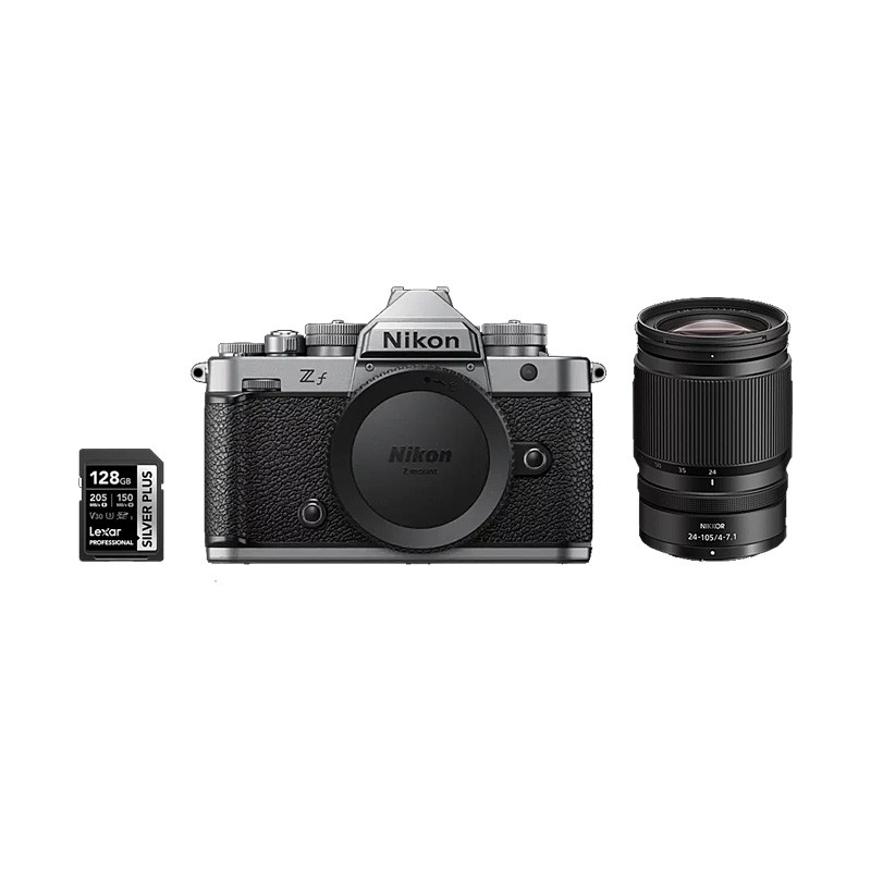 Nikon Z f Silver, ispirata alla leggendaria Nikon FM2 è una versione esclusiva che unisce il fascino del design vintage alla finitura Silver, elegante e senza tempo. La tecnologia mirrorless full-frame della serie Z assicura prestazioni di livello superiore, mentre ogni dettaglio estetico esalta la tradizione fotografica Nikon in chiave moderna. Con la Z f Silver dai forma alla tua creatività con immagini straordinarie e uno stile unico, tutto tuo.
